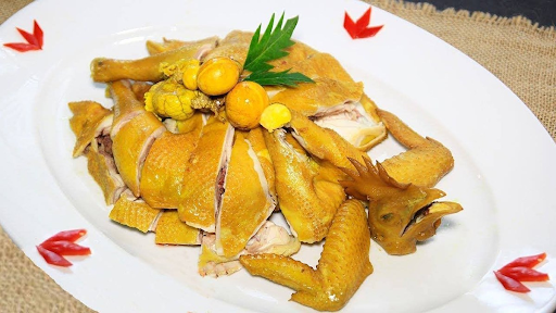 - Thịt gà luộc là món chế biến nhanh, thơm ngon lớp da gà dai giòn sựt sựt, vàng ươm, nhai cực thích. Thịt gà mềm, ngọt, chấm cùng muối tiêu chanh thơm ngon hết ý.