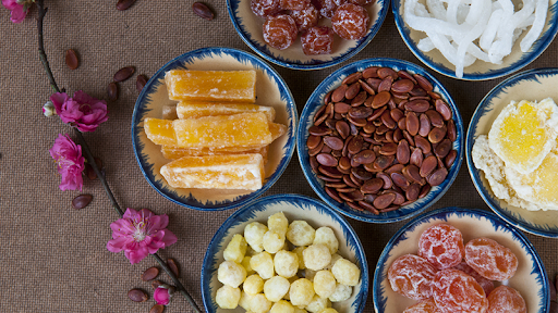 Nhắc đến tết,chúng ta không thể nào không nhắc đến mứt - món ăn quen thuộc có vị ngọt như thể hiện tình cảm ngọt ngào của người tặng cho những người thân yêu. Có nhiều loại mứt ngon, ví dụ như: mứt sen, mứt dừa, mứt gừng,...